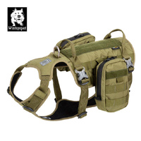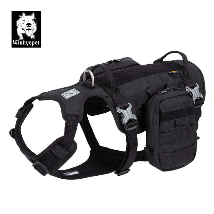 $132.53Military Harness Backpack. This High-performance tactical training military harness features adjustable buckles to provide superior comfort for your dog and a side pocket for treats or other items. The backpack is detachable and looks great if you want to use it just as a harness. The Military harness backpack is waterproof and made from Codura fabric which makes it perfect for all seasons. It features an aluminum Alloy D ring and nylon webbing. The Backpack harness is easy to take on and off.