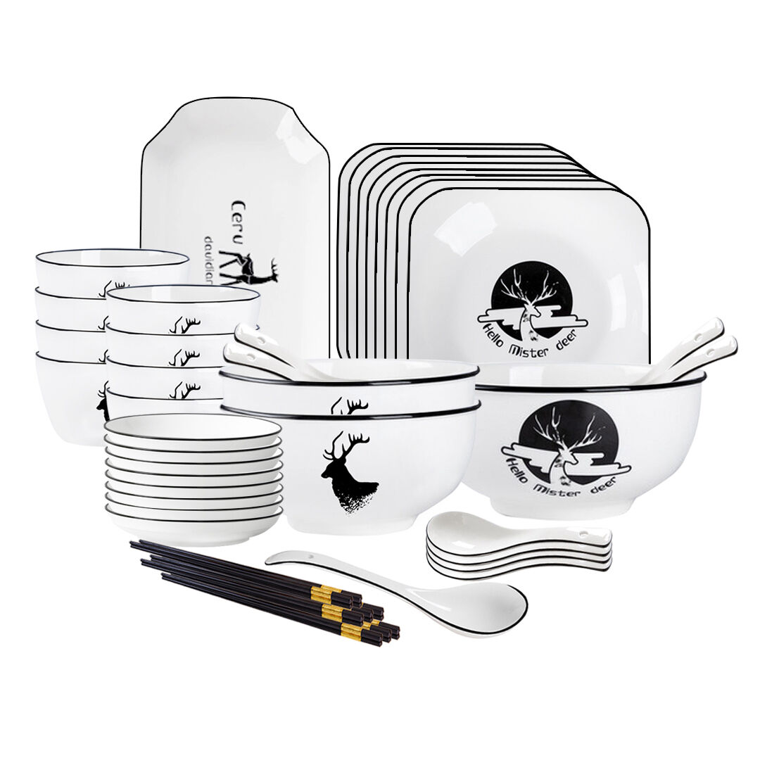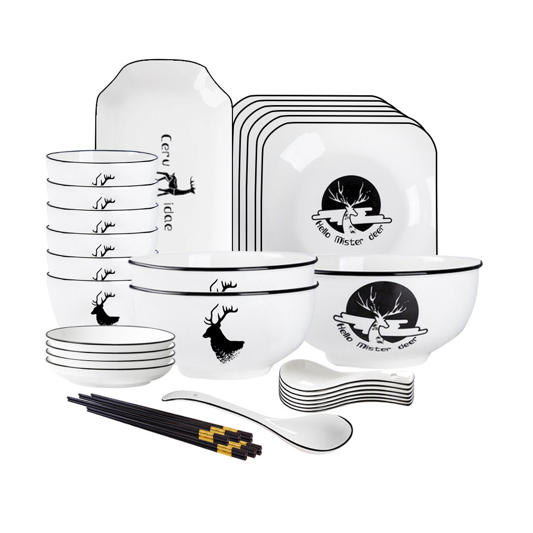 White Antler Printed Ceramic Dinnerware Set Crockery Soup Bowl Plate Server Kitchen Home Decor
