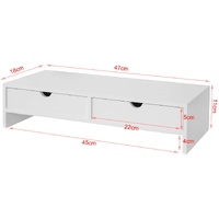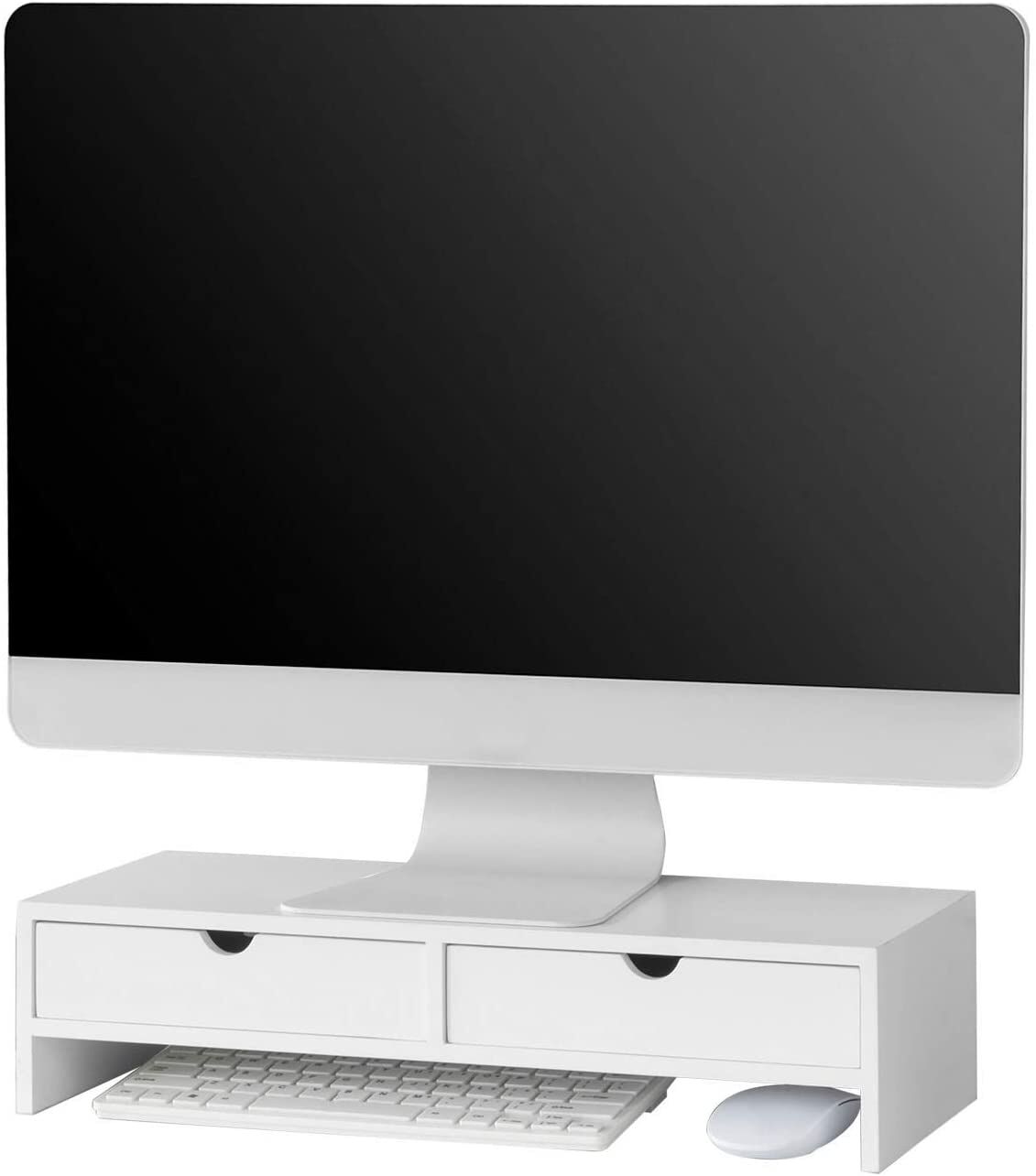 VIKUS White Monitor Stand Desk Organizer with 2 Drawers
