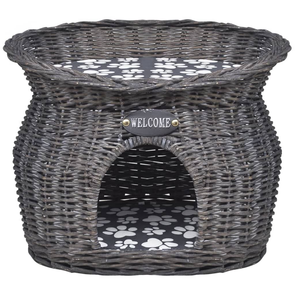 This cat house will not only give your pet a comfortable place to sleep and relax in, but its classic willow design will suit any interior. It will make a great gift for your pet or animal loving friend! This is an extravagant and elaborate woven cat bed. The included thickly padded soft cushions make it really cozy and snug. Made of willow, this pet house is sturdy, yet lightweight enough to carry along. This pet house can also be used outside, in the garden or on the patio, for your cat, kitten, dog or puppy to sleep, rest or play. Pets will enjoy the sunshine while lounging on the top floor!