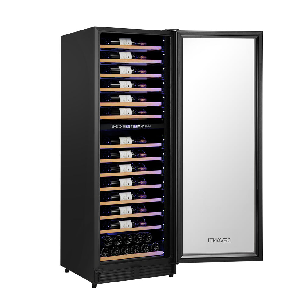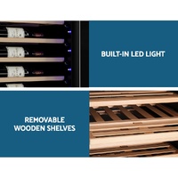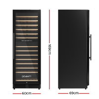 $1,181.57Need a reliable way to store your wine collection? Look no further than our Devanti Wine Cooler. Utilising the latest high-precision compressor cooling technology, our wine cooler ensures your favourite vintages are well kept at their recommended temperatures with its circulated cool air. The cooler has a dual zone system with two separate temperature-controlled zones, ensuring perfect cooling temperatures for both white and red wines. The temperature can be set between 5? and 13? for the upper zone (which is suitable for dry white and sparkling wines), and between 12? and 18? for the lower zone (which is suitable for red wines). The digital control panel makes for easy temperature adjustments while the built-in LED lights help you to see your wines in the best light. The stylish design stores up to 128 bottles of wine in a neat and tidy wood shelving system. Better still, the double-glazed glass door is UV-resistant and provides excellent insulation. The ensemble works quietly and efficiently and has a built-in lock for total peace of mind. Suitable for both home and commercial use. Treat your vintage collection with the care it deserves - invest in a Devanti Wine Cooler today.