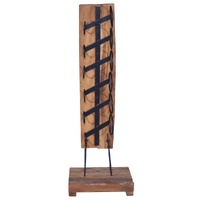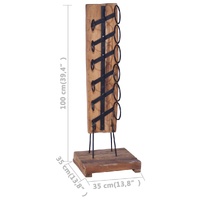 Our wooden wine rack keeps your wine collection organised and within reach while adding a touch of vintage style to your home. This floor bottle stand is constructed from selected teak wood, ensuring stable base support. Also, the rod iron supports fastening the bottles better. The combination of natural wood and metal brings retro flair. It accommodates 6 standard-sized bottles of wine and looks beautiful in every kitchen or living room.