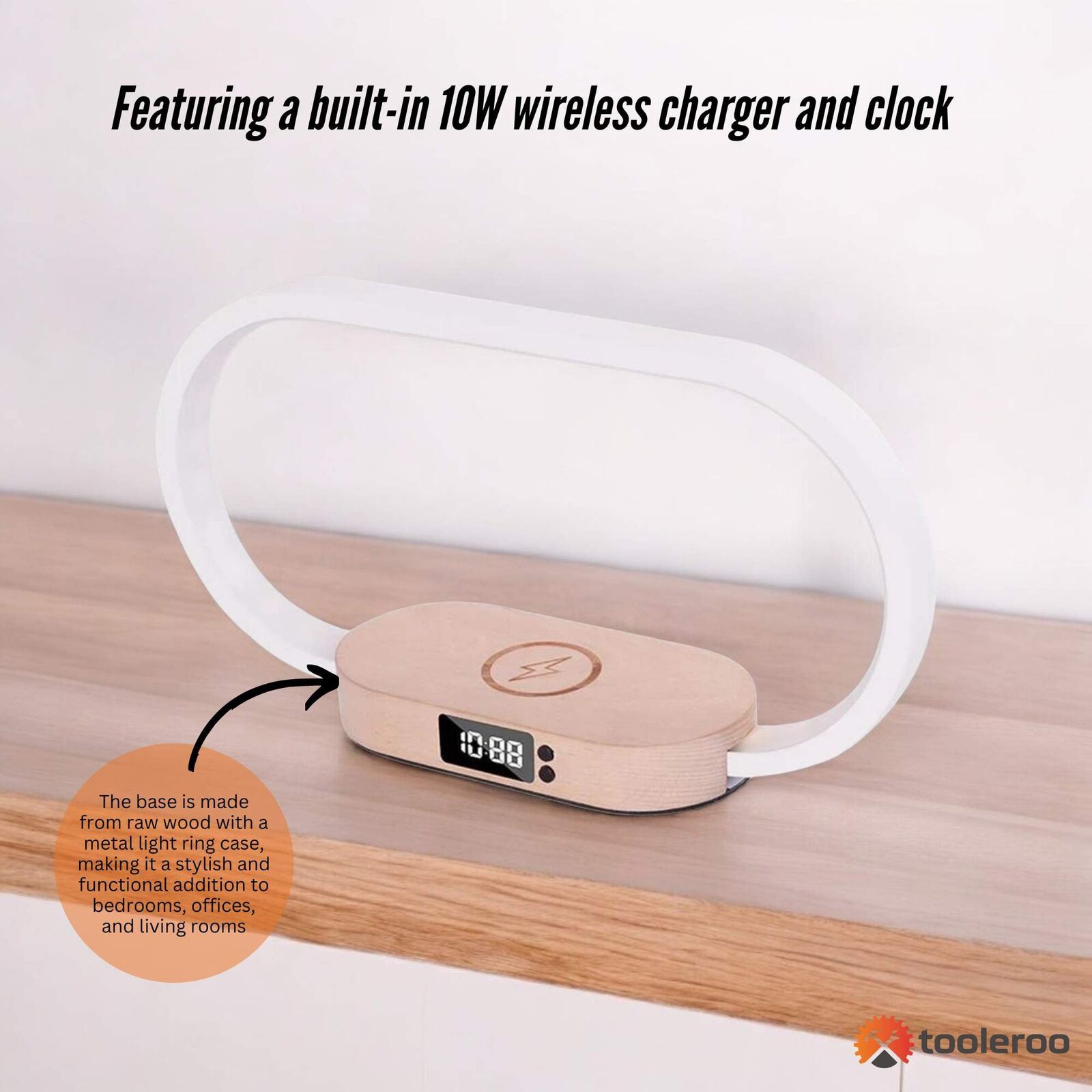 Upgrade your bedside with our versatile Bedside Lamp, featuring a built-in 10W wireless charger and clock. This all-in-one solution is designed to enhance your nighttime routine and keep your space organised. The lamp offers dimmable lighting with three colour temperatures, allowing you to create the perfect atmosphere.