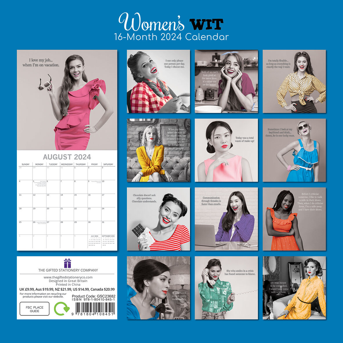 Women's Wit - 2024 Square Wall Calendar 16 Month Planner Christmas New Year Gift