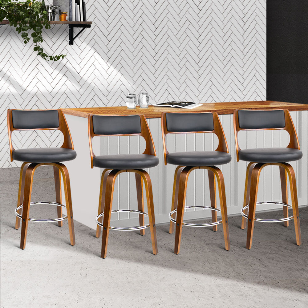 Wood, metal and PU leather combined together create one unforgettable bar stool! Crafted with solid wood, these bar stools feature a faux-leather seat and backrest that feel smooth and divine to sit on. The contoured backrest also provides ample support while the anti-slip rubber pads at the bottom of the legs remain firm and stop your floors from getting damged. Lastly, the chrome rectangular footrest lets you perch in style.