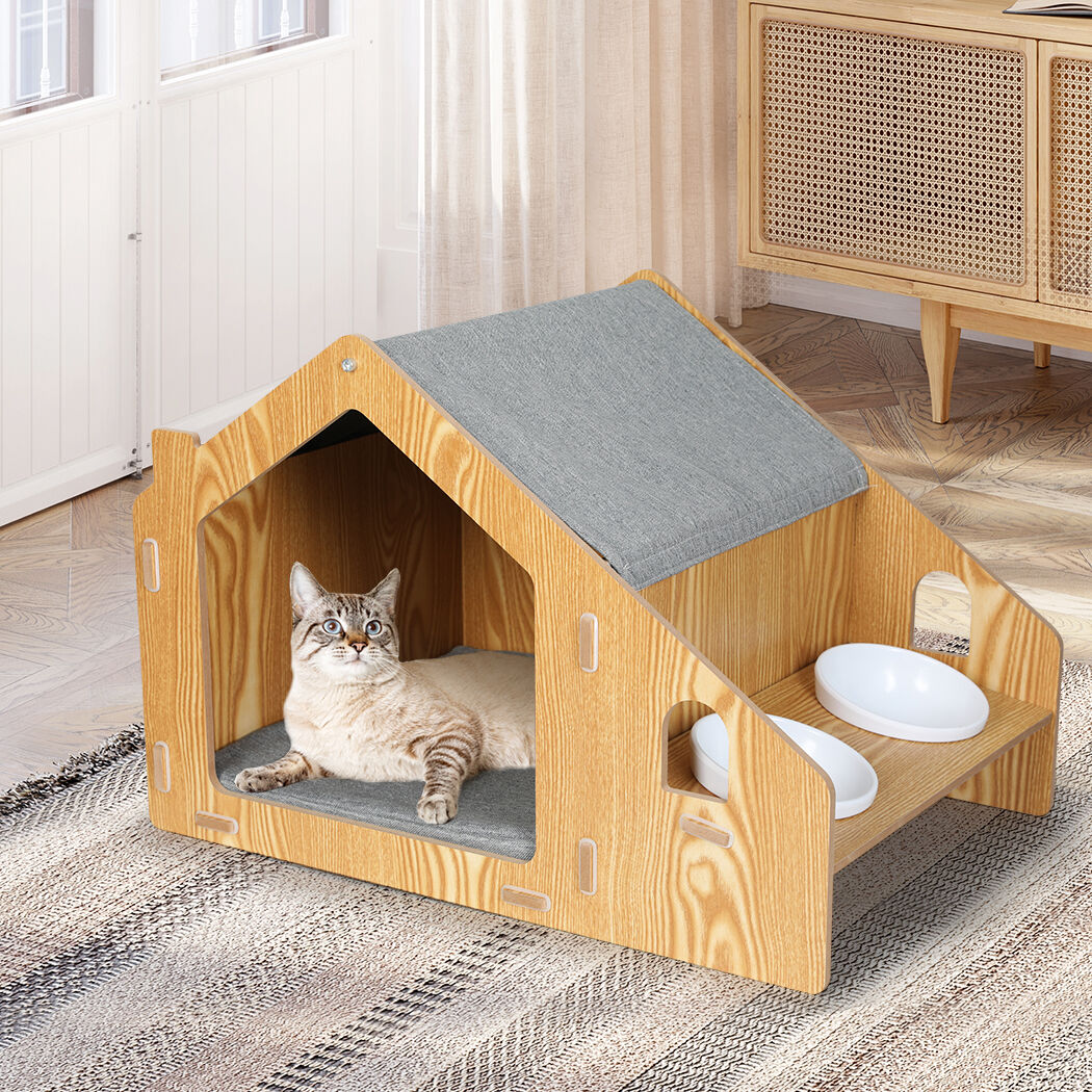 Build your cat house for your cats. In fact, two or maybe more cats can fit inside. Your cat might want to sleep on your laptop but at least give them the option to sleep in their cat house.Eating and sleeping in the one spot. Your cat house has a section for two bowls. If you have a lazy cat, this cat house is for them. They can just hop out and commence to eating.Cats are known to test their claws on anything. Maybe it is because they don’t have their own cat house to live in. You would get a bit angry if you had no home to live in too.Take the memory foam mat out of the cat house. Remove the cover. Run it through your washing machine. Wide down any surfaces with a damp cloth. Simple to use. Simple to clean.Want a new nesting spot for your cat Assemble your cat house and put some memory foam mat inside for Mr Kittens. Give him a new cat bed and a cosy home to call his own.