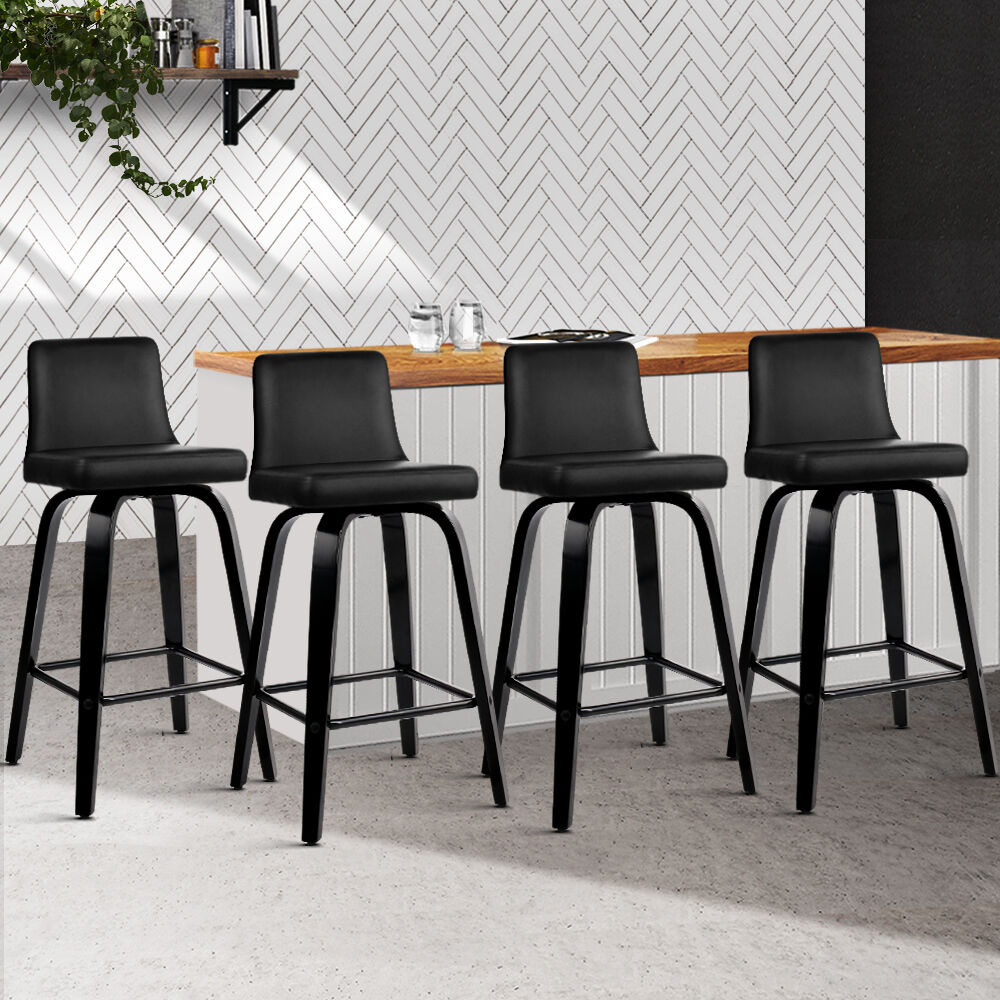 Wood, metal and deluxe PU leather are a match made in furniture heaven. Meticulously crafted using solid plywood with a stunning black finish for the frame, these bar stoolls feature a generous 6cm thick faux leather seat that swivels 360 degrees, and a padded backrest that makes the person sitting perch in total comfort.