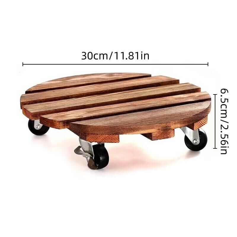 This solid wood round planter base is designed to make your heavy plant pots mobile and easy to move. Equipped with a 360° rotating design and 4 durable casters (2 with brakes), this base allows for effortless mobility and secure positioning of your plants. Made from high-quality solid wood and reinforced with metal casters, it supports up to 220 lbs, making it suitable for larger flower pots. The carbonized wood finish offers a modern, sleek look while ensuring weather resistance, perfect for both indoor and outdoor use.