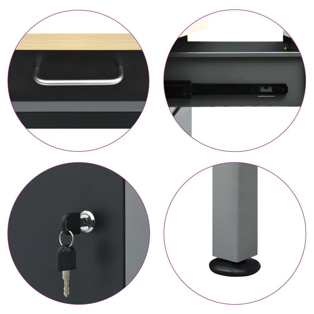 This heavy duty workbench, standing out with ample storage space and 500 kg loading capacity, will be an essential addition to your workshop and garage. The large and sturdy tabletop provides a stable platform for all your repair works. The workbench has 6 drawers, ensuring that you can organize your tools, parts and accessories such as screws, nails and adhesive tape well. All drawers are equipped with ball bearing mechanism for smooth sliding. There are suitable compartments for larger tools, the 2 cabinets with lockable doors, which can easily accommodate drills, cable drums and grinders. Additionally, the feet are height-adjustable; you can put the workstation wherever you need it, and it will stand firmly even on uneven ground. This workstation is crafted from premium steel and engineered wood, making it extra sturdy, durable and easy to clean. Assembly is easy. The work bench will be a great helper whether you want to finish repair works or fulfill your DIY dreams!
