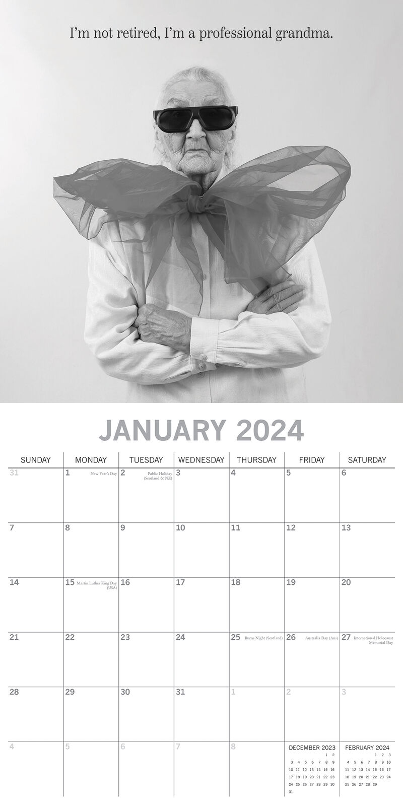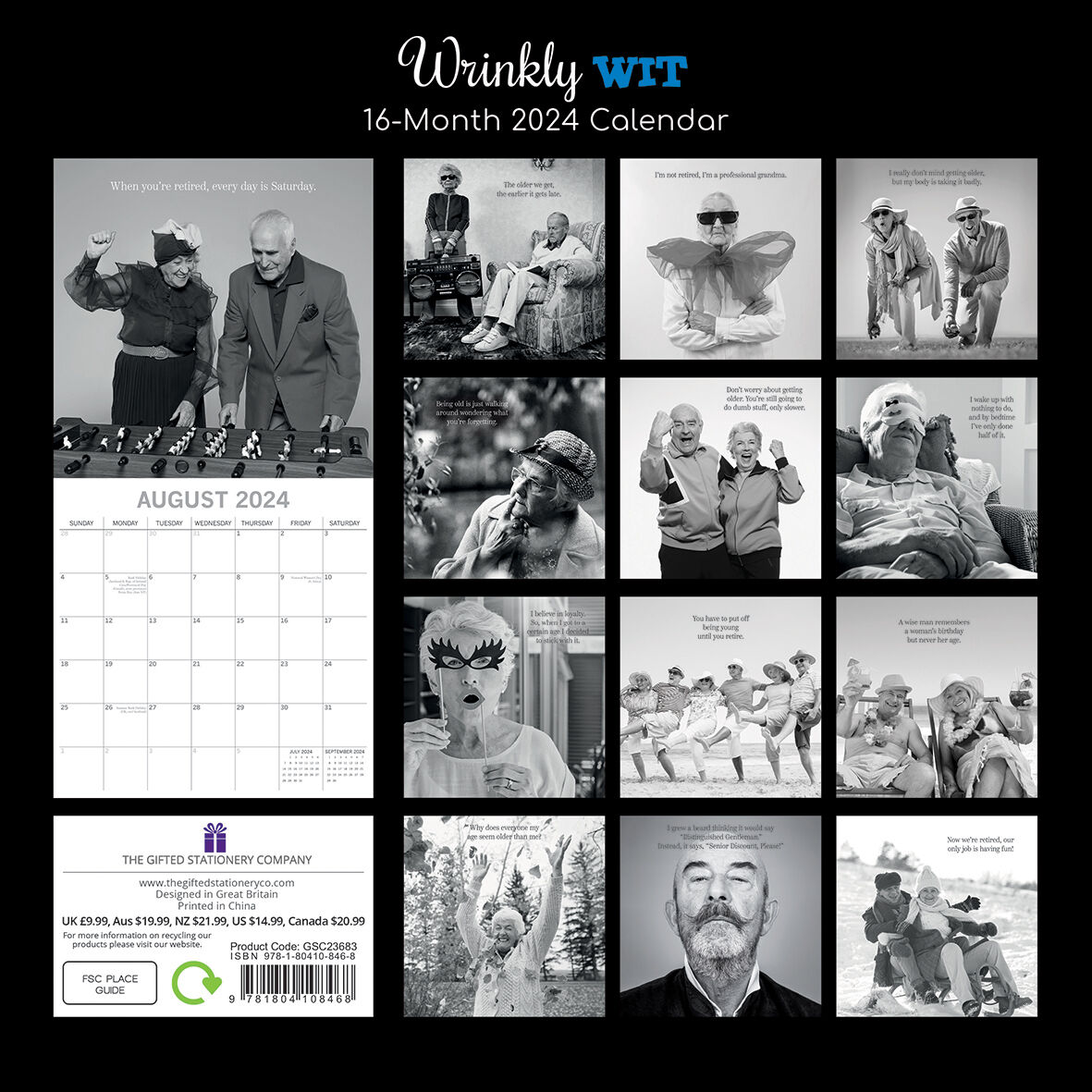Wrinkly Wit - 2024 Square Wall Calendar 16 Months Funny Planner New Year Gift