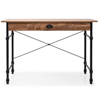 This writing desk will make a unique addition to your interior with its industrial design. You can use it as a computer desk for your daily work or as a console table. The desktop is made of MDF with an oak-coloured finish. The strong steel legs contribute to the desk's solidity as well as its industrial charm. The desk has one large drawer with ample space for keeping your important items organised and within reach. Assembly is easy.