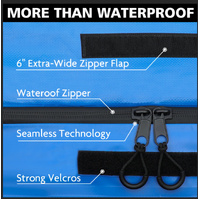 Upgraded waterproof zipper and widened zipper cover. We've upgraded it to a waterproof zipper with a widened 4.7" zippered lid that prevents rainwater penetration and helps keep your stuff 100% dry.