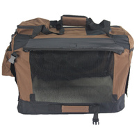 Our Dog Crate is made of 600D polyester giving higher durability. The design features mesh windows in every panel delivering better ventilation and a comfortable floor mat. Theaccessory bagon the side provides handy storage of accessories.
