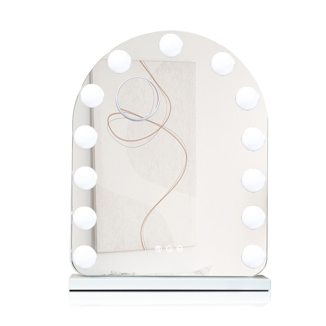 Introducing the elegant Hollywood arched makeup mirror, a luxurious addition to your beauty routine. This mirror is designed with state-of-the-art features that not only enhance your makeup application experience but also ensure a comfortable and enjoyable session.